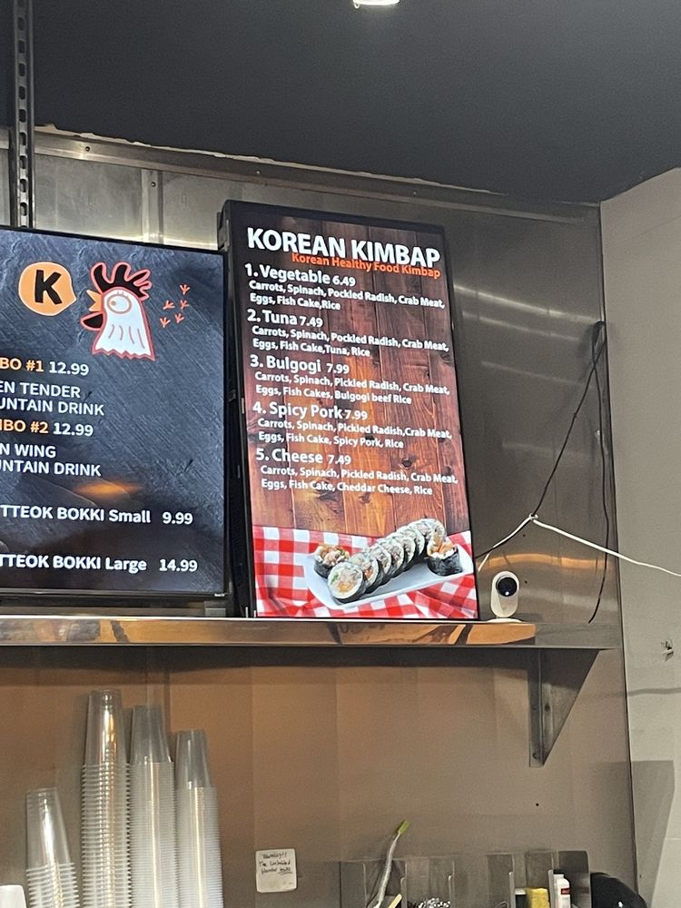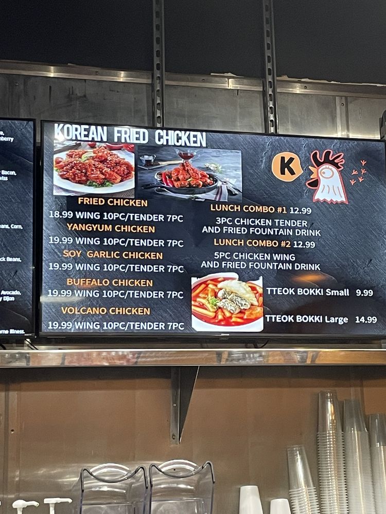 You can taste the original Korean fried chicken made by a Korean chef. It's crispy on the outside, juicy on the inside, and has a sauce you can eat with it.koran fried chicken tender 3pc one sauces frie Drinks sauces yangyum sweet,spicysoy garlic salty, sweet ,garlicky buffaloA flavorful hot sauce with a smooth bold flavor very hot sauce Our cayenne pepper based very spicy sauce