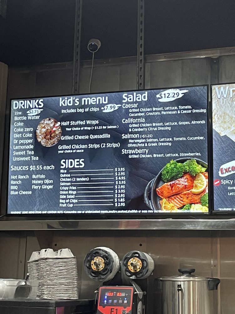 Korean style marinated spicy chicken, lettuce, rice with soy sauce. Add mozzarella cheese for an additional charge.